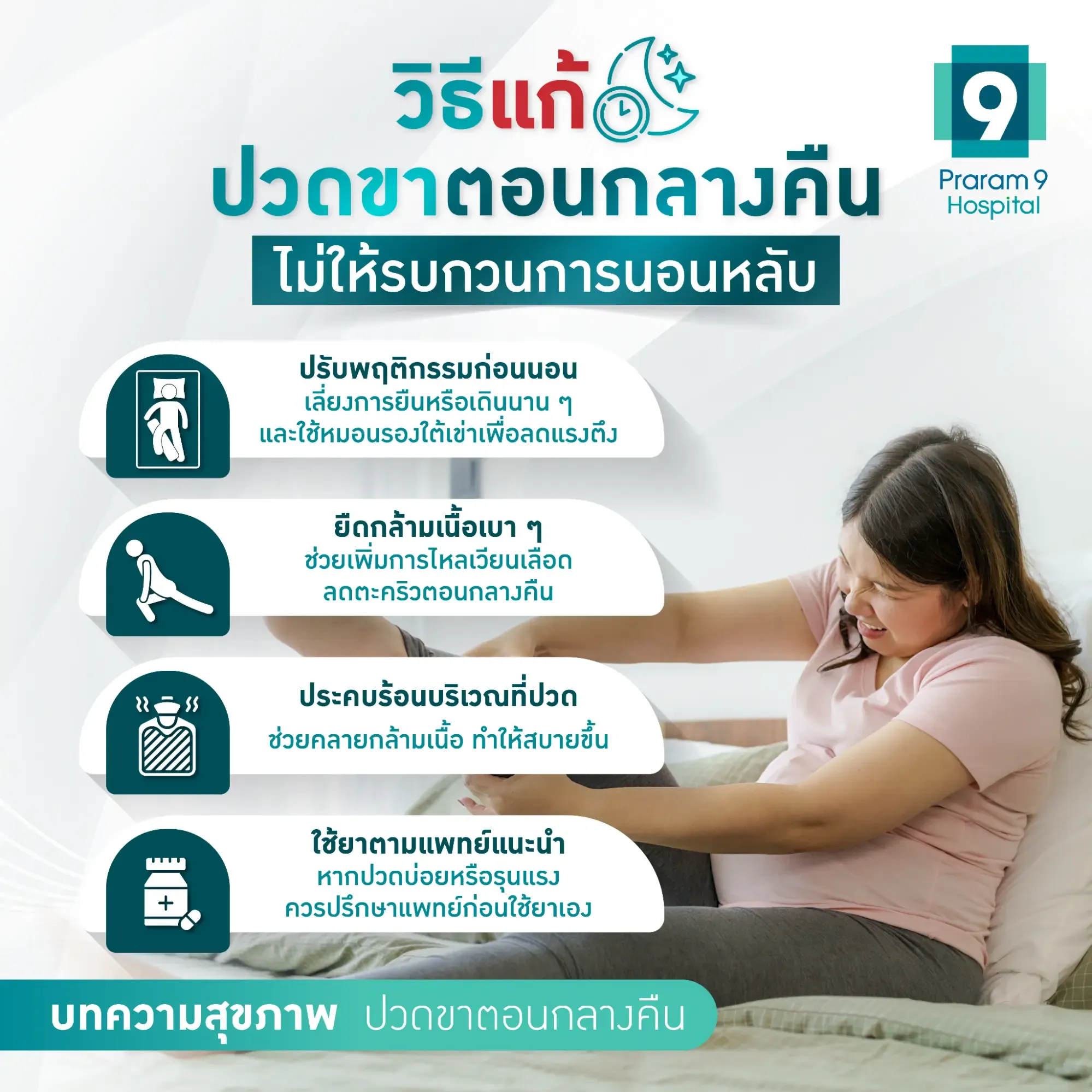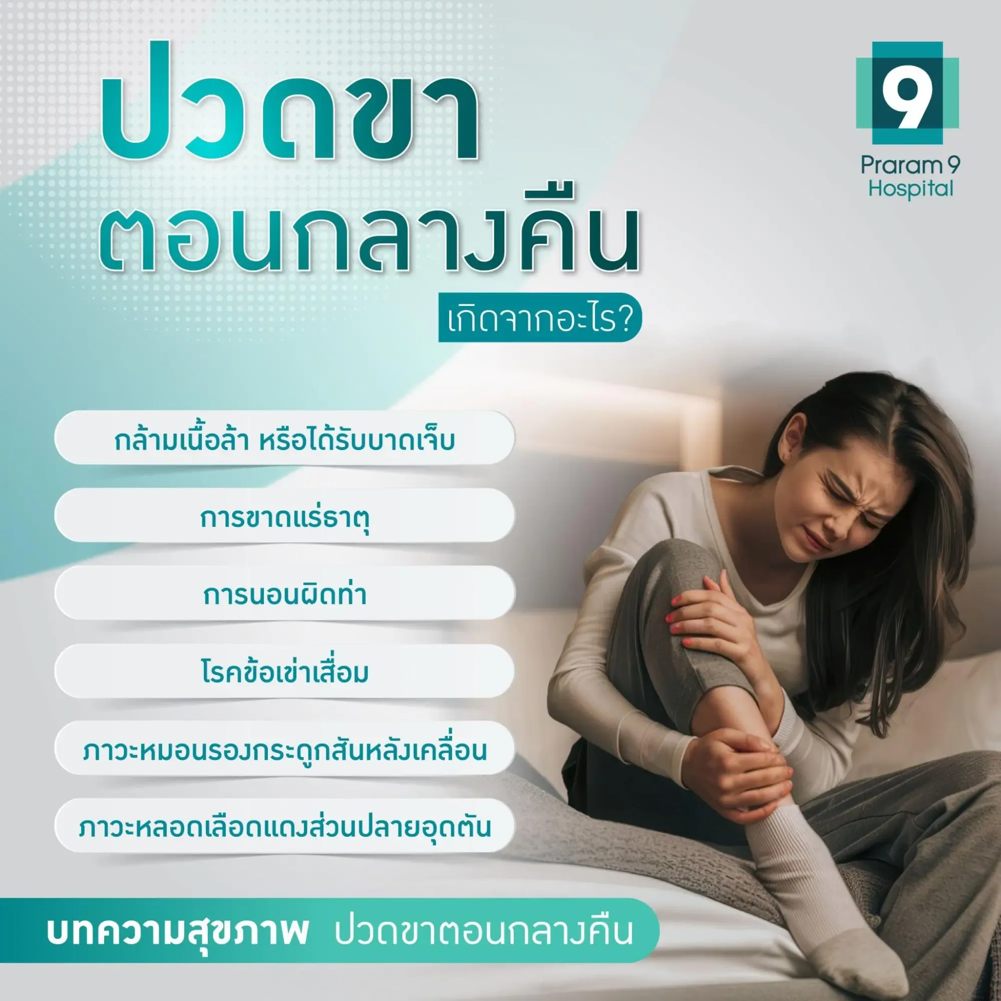 อาการปวดขาตอนกลางคืนนี้อาจเกิดแค่ชั่วคราว หรืออาจเป็นสัญญาณของปัญหาสุขภาพที่รุนแรงก็ได้ บทความนี้จึงจะพาไปทำความเข้าใจถึงสาเหตุ อาการ และวิธีรักษาอาการปวดขาตอนกลางคืน เพื่อให้คุณมีคุณภาพชีวิตที่ดีขึ้น ไม่ต้องสะดุ้งตื่นจากอาการปวดขาตอนกลางคืนอีก