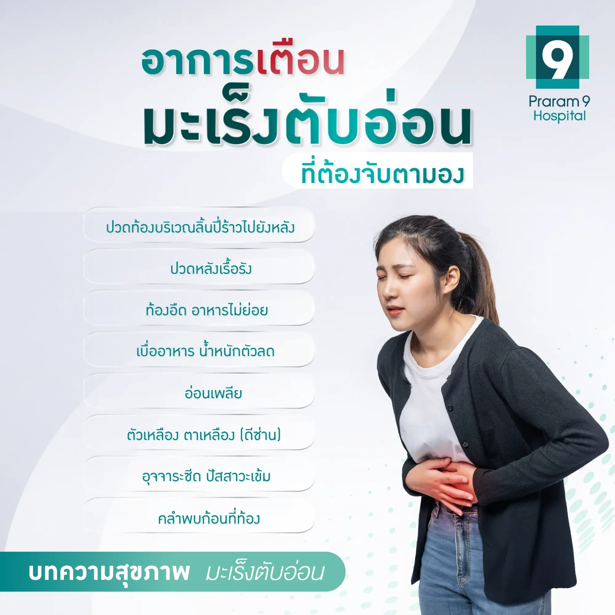 ด้วยเหตุนี้ การรู้เท่าทันอาการเตือนโรคมะเร็งตับอ่อน จึงช่วยเพิ่มโอกาสตรวจวินิจฉัยและเพิ่มอัตราการรอดชีวิตให้แก่ผู้ป่วยได้มากขึ้น ซึ่งอาการที่ควรเฝ้าระวั]งมีดังต่อไปนี้