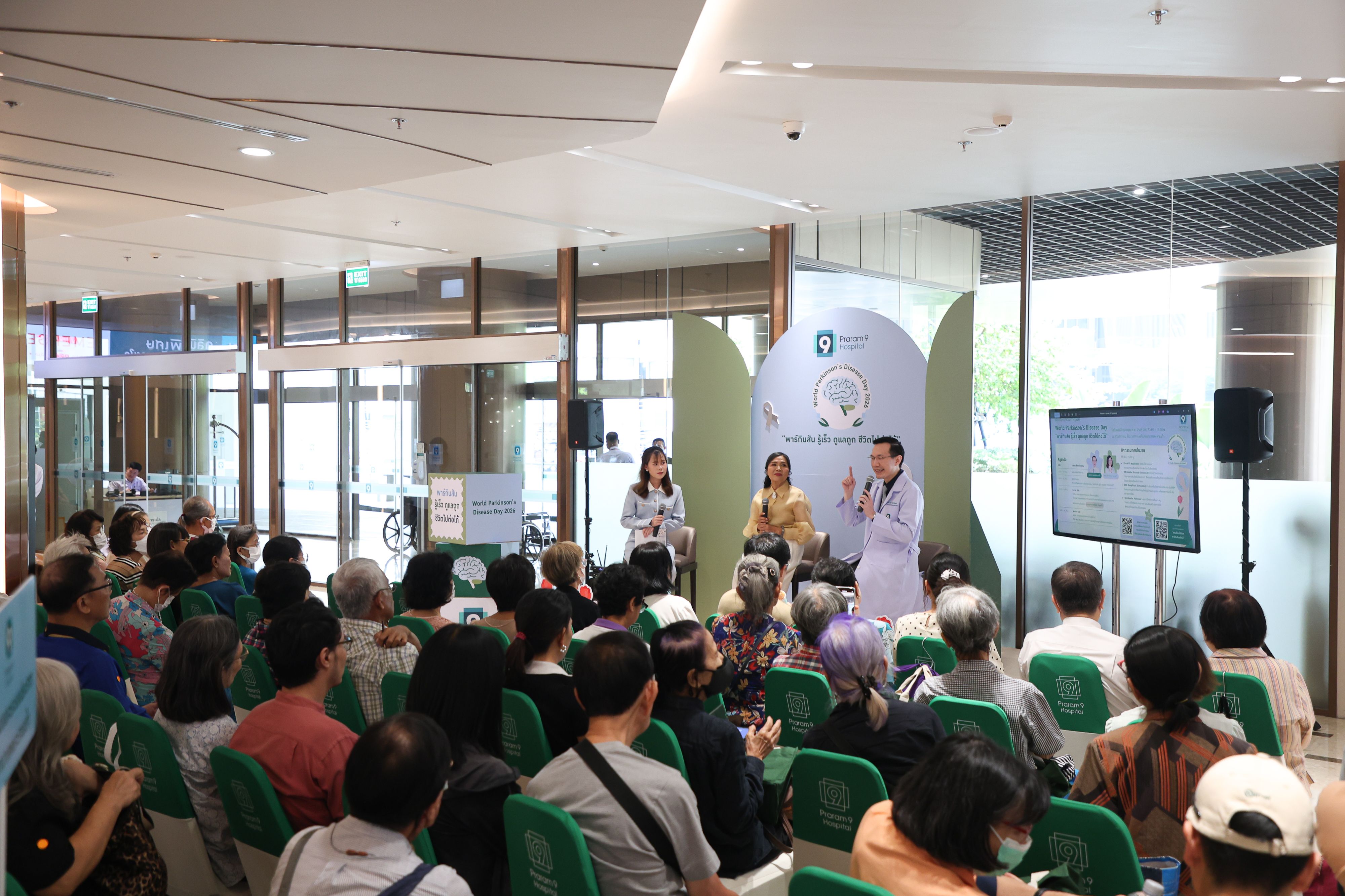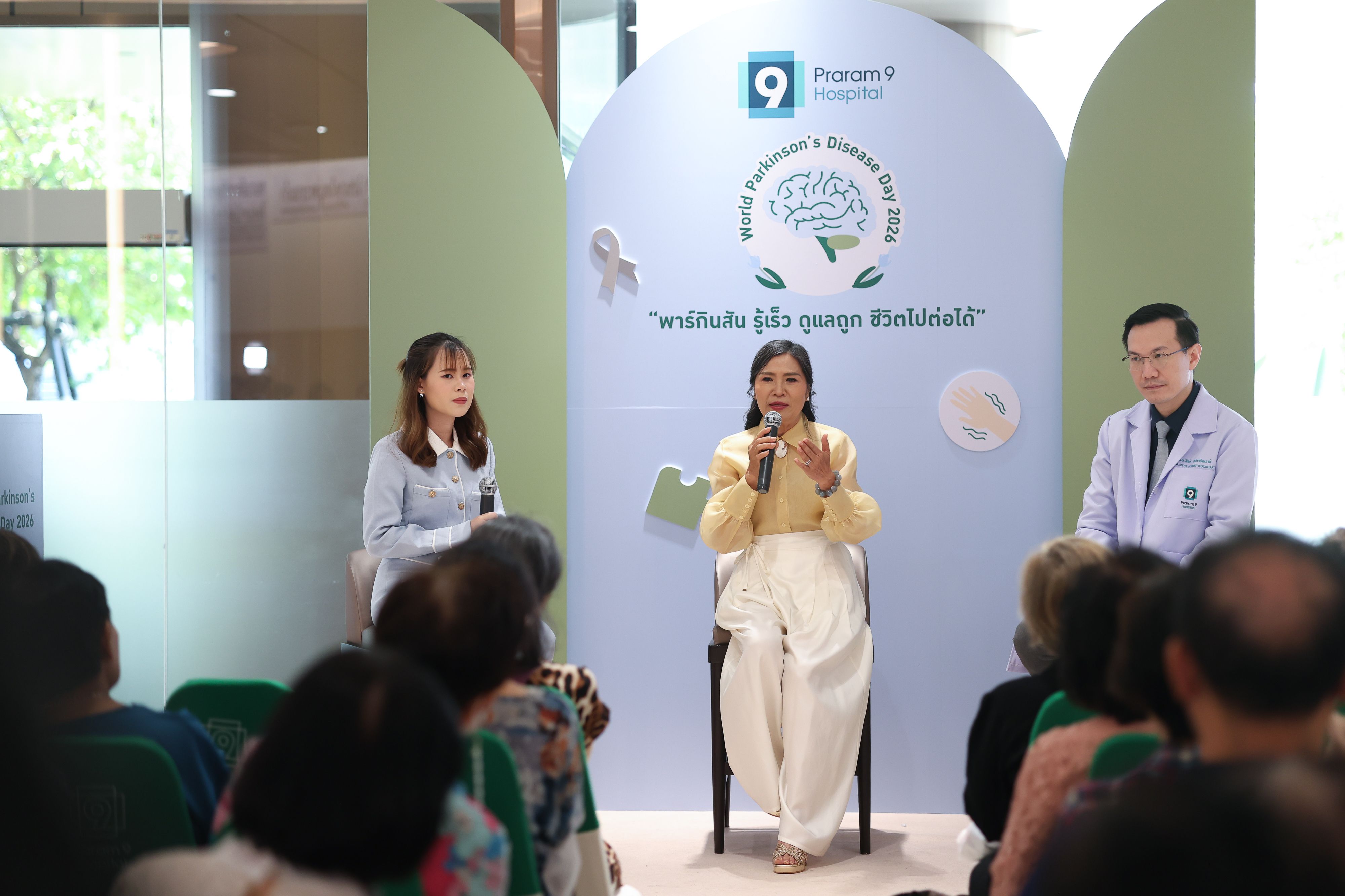 เพื่อสร้างการตระหนักรู้เกี่ยวกับโรคพาร์กินสัน ศูนย์สมองและระบบประสาท โรงพยาบาลพระรามเก้า จึงได้จัดกิจกรรม World Parkinson’s Disease Day 2026 “พาร์กินสัน รู้เร็ว ดูแลถูก ชีวิตไปต่อได้” เนื่องในวันพาร์กินสันโลก เพื่อให้ความรู้เกี่ยวกับโรคพาร์กินสัน สัญญาณเตือนระยะเริ่มต้น และแนวทางดูแลผู้ป่วยอย่างถูกต้อง โดยมีแพทย์ผู้ชำนาญการร่วมเสวนาในหัวข้อ “พาร์กินสัน อาการเริ่มต้นที่ไม่ควรมองข้าม พร้อมเทคนิคดูแลผู้ป่วยพาร์กินสันที่บ้าน” นำโดย นพ.สิทธิ เพชรรัชตะชาติ แพทย์ผู้ชำนาญการด้านสมองและระบบประสาท และ พญ.ปิยะวรรณ งามองอาจ แพทย์ผู้ชำนาญการด้านเวชศาสตร์ฟื้นฟู พร้อมแขกรับเชิญพิเศษ “แม่แก้ว” คุณณราวดี คูกิมิยะ โดยบรรยากาศภายในงานได้รับความสนใจและมีผู้เข้าร่วมอย่างคับคั่ง