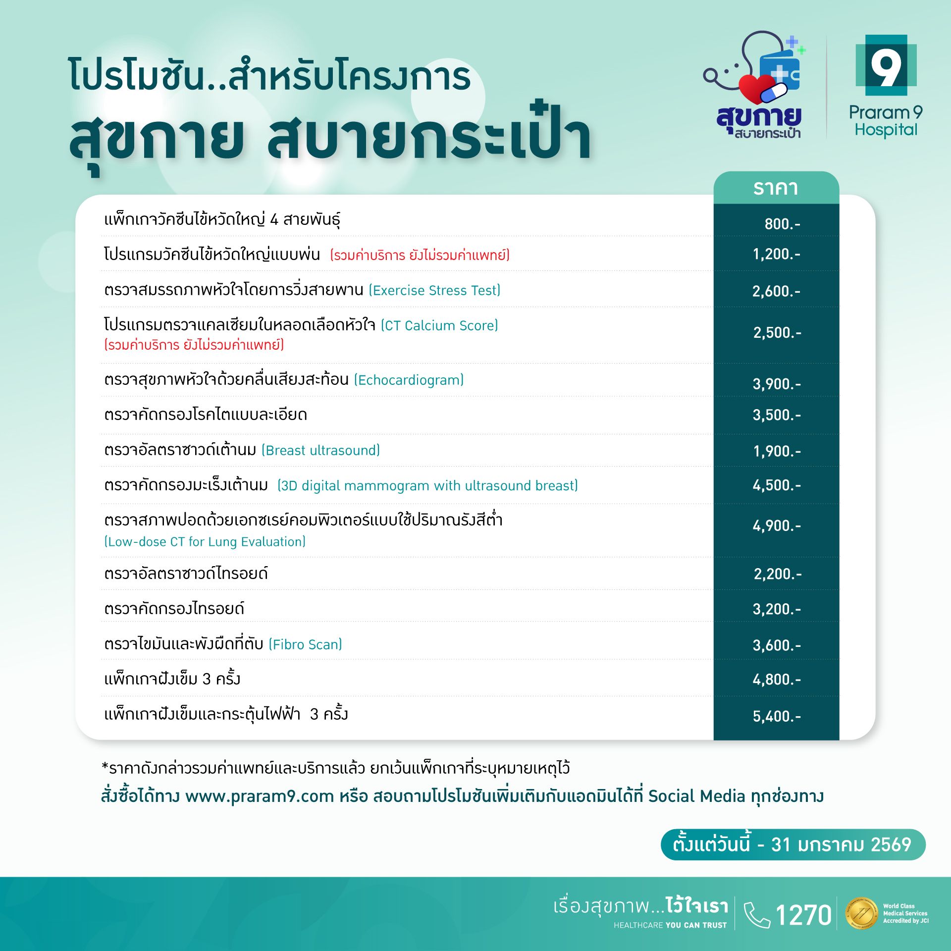 ท่านสามารถเข้ารับบริการได้ถึงวันที่ 31 มกราคม 2569