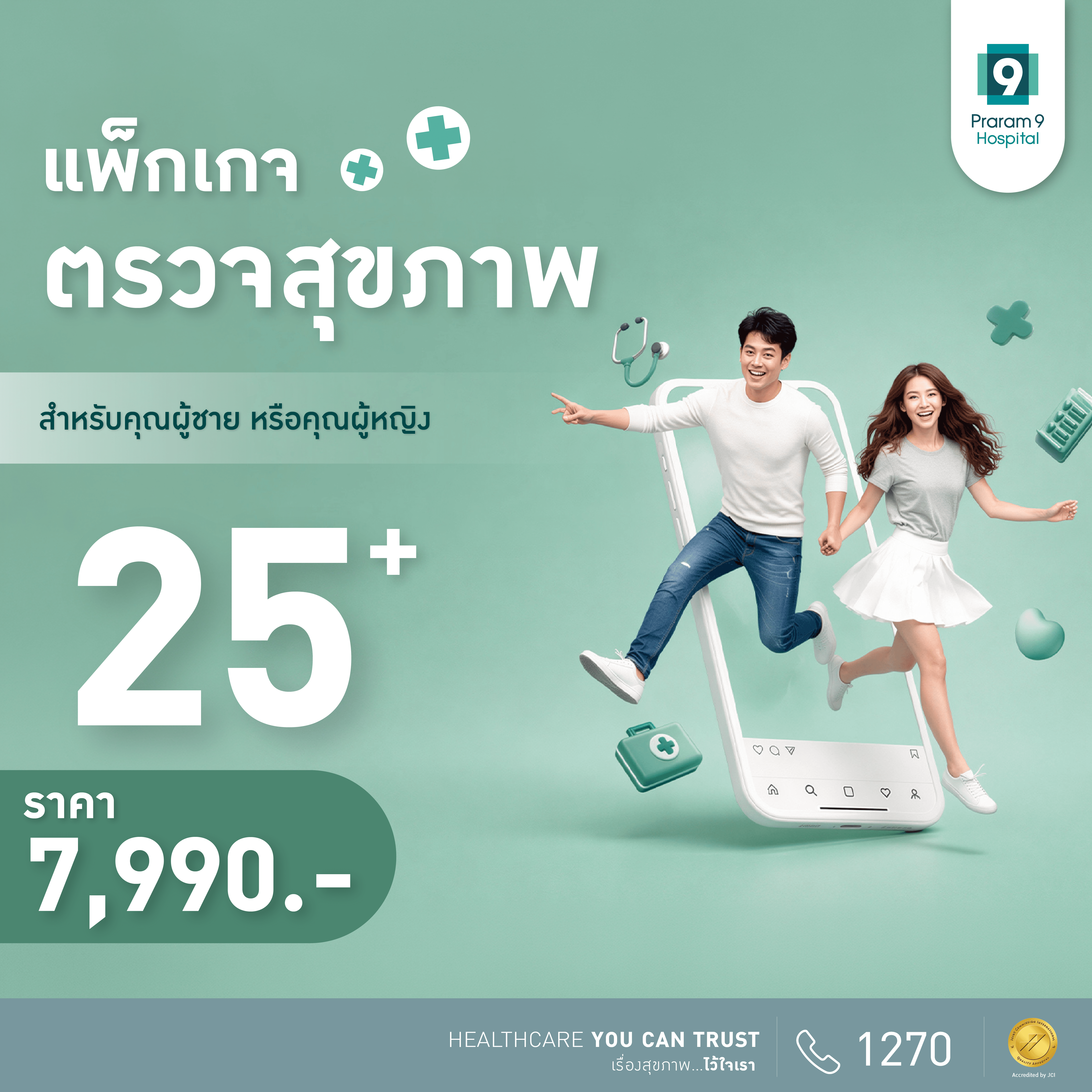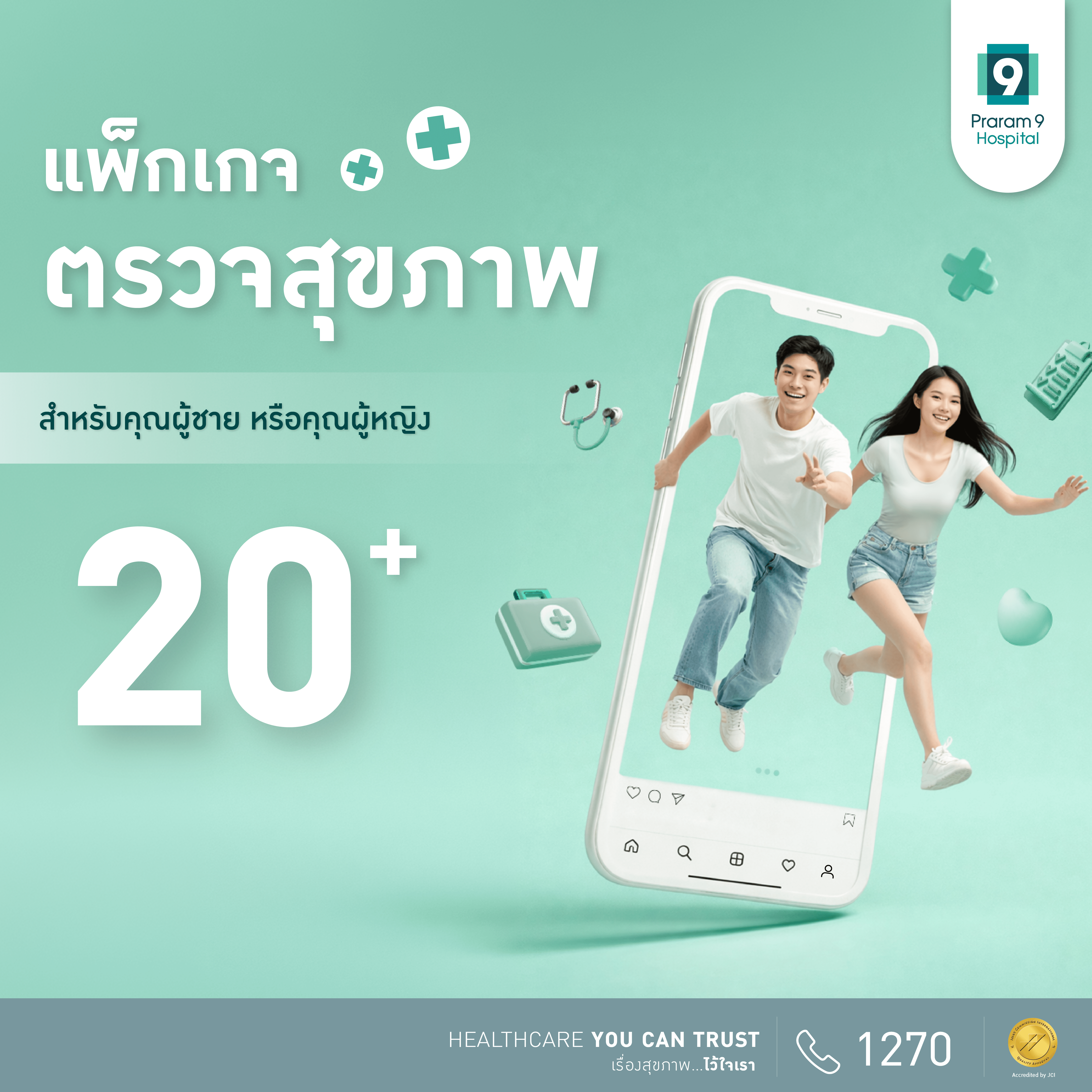 • ท่านสามารถเข้ารับบริการได้ที่ศูนย์ตรวจสุขภาพ โรงพยาบาลพระรามเก้า อาคาร B ชั้น 12